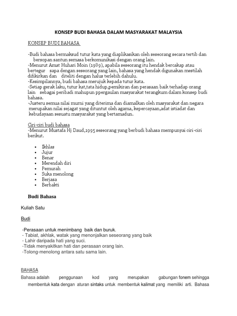 Konsep Budi Bahasa Dalam Masyarakat Malaysia Pdf