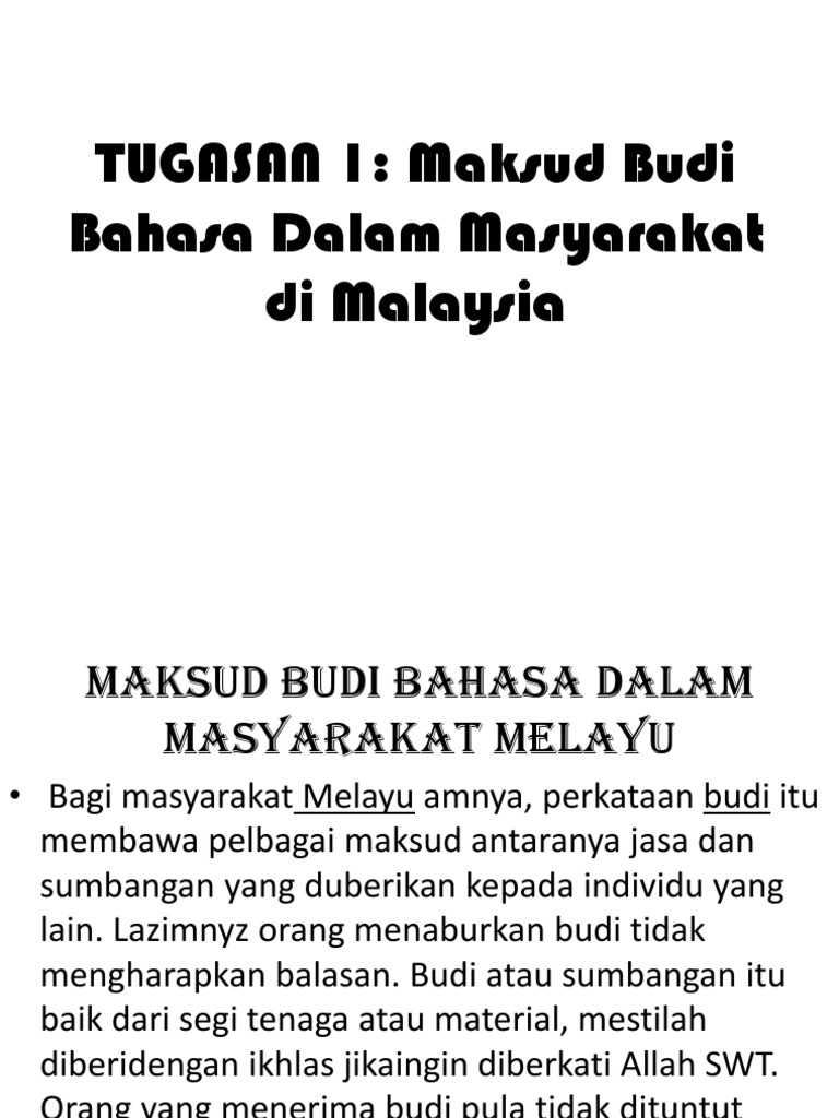 Maksud Budi Bahasa Dalam Masyarakat Di Malaysia Pdf