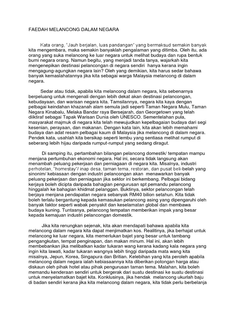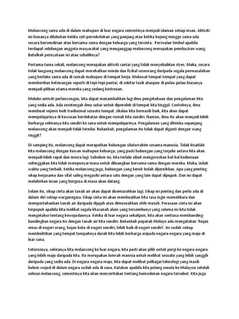 Kebaikan Kebaikan Melancong Docx Karangan Spm Kebaikan Kebaikan Melancong Ramai Orang Akan Pergi Melancong Bersama Sama Dengan Keluarga Course Hero